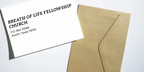 If you would like to give to BOLFC by mailing a check, please make checks payable to Breath Of Life Fellowship Church. Our mailing address is: Breath Of Life Fellowship Church P.O. Box 15566 Austin, Texas 78761