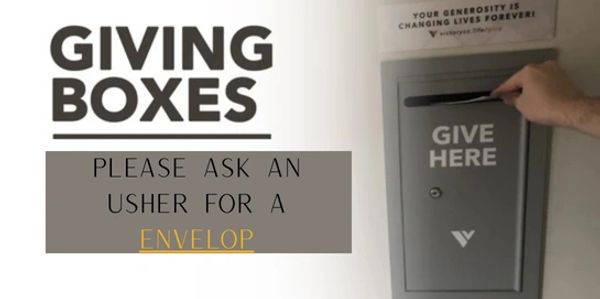 You can drop your gifts of with one of our ushers collecting the offerings.